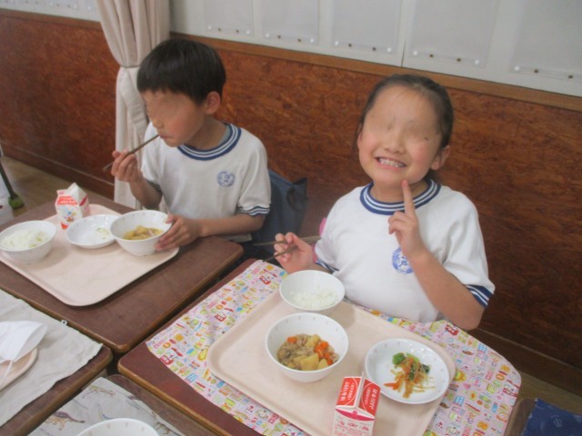 今日から2年生以上の学年は給食が始まりました。