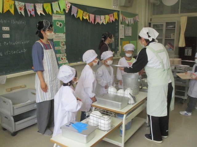 元気よく「いただきます。」と言って、おいしく給食を食べました。