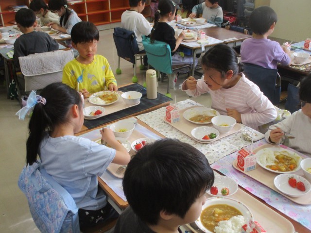準備前からカレーの匂いが教室まで漂ってきて、みんな楽しみにしていました。