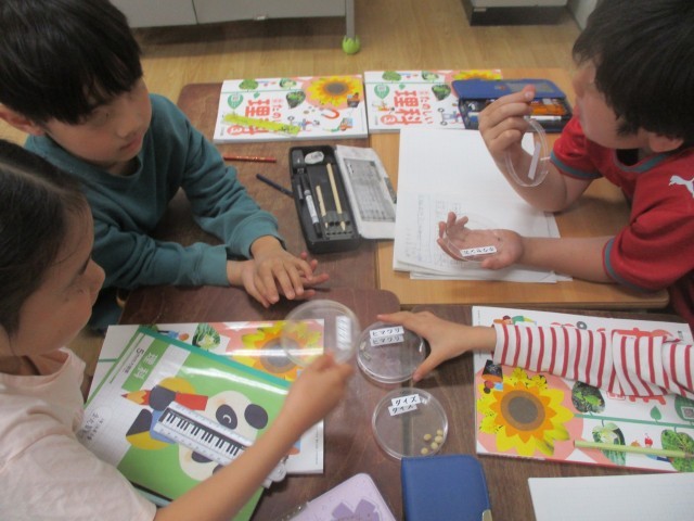 班での活動では、活発な意見交換ができ、種を見せてくれる子もいました。