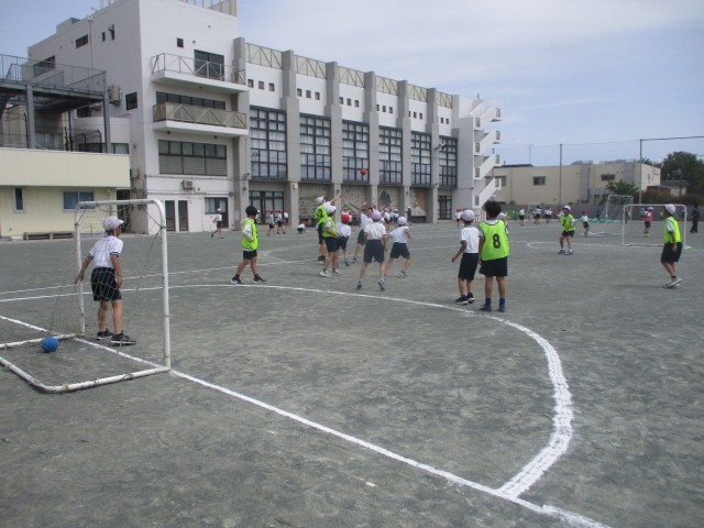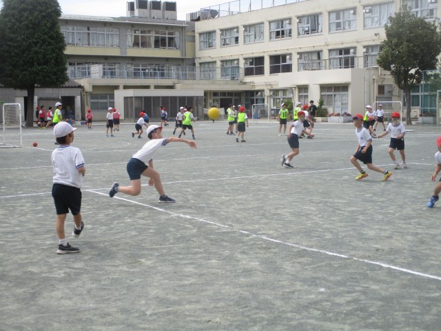 校庭では、ドッジボール、ハンドボール、サッカーのクラブ。体育館では、バスケットボール、バドミントン