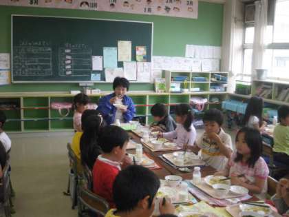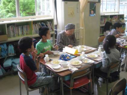 2年生は、お手伝いをいただいた地域の人たちと会食しました。