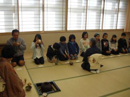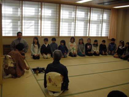 いなほの間がおごそかな茶室に変身、子どもたちは緊張感の中で日本の伝統文化に触れることができました。貴重な体験をすることができました。