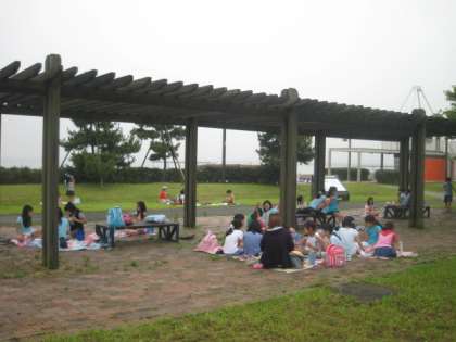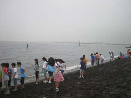 城南島海浜公園で昼食。その後、東京湾の海辺で遊びました。