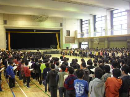 この日の児童集会は5日(火)に開かれる「6年生を送る会」に向けて在校生からの出し物の練習を行いました。合唱とエールの練習です。素敵な歌声と4,5年生代表委員会を中心とした元気なエールの掛け声が響き渡りました。当日はお世話になった6年生への感謝の気持ちが伝わることでしょう。