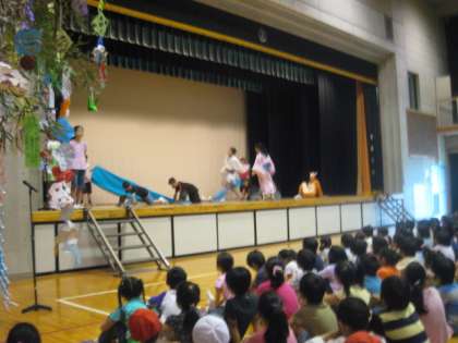 今日の集会は、七夕集会でした。集会委員会の七夕の劇に、子どもたちは集中して見ていました。全学年が、短冊に願いを書いています。どんな願いを書いたかお子さんに聞いてみてください。