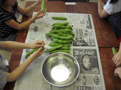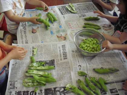 5月14日(火) そら豆のさやむき(1年)