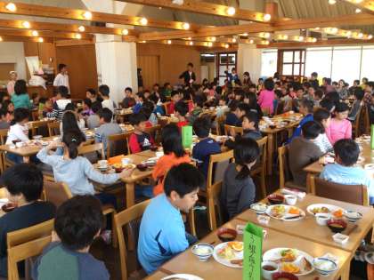 広い食堂もぎっしりです。