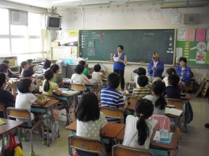 社会科の授業で、交通事故防止の向けたボランティア活動を行ってくださっている、『TAP(塚戸安全パトロール)』の方々から、交通安全に関するお話をしていだだきました。