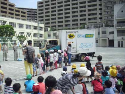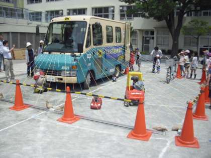 PTAが主催する交通安全教室が行われました。運送会社の方々を講師に、正しい横断歩道の渡り方や、自動車から見えない場所の確認など、子どもたちの興味や関心を高める内容が多く、楽しく活動することができました。