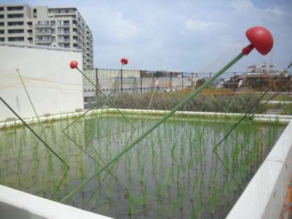 学校運営委員の方々が、鳥よけのネットをはってくださいました。