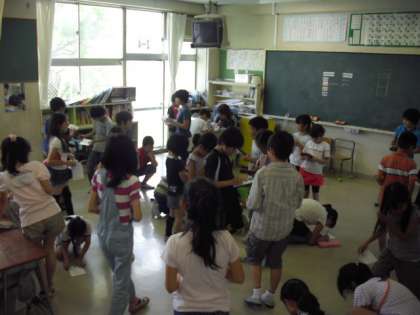 今年度も「あそぼうデー」が始まりました。1・3・6年生と2・4・5年生で30グループを作り、各教室で自己紹介を兼ねた名前ビンゴゲームを行いました。