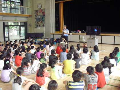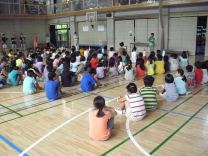 今日から明日まで5,6年生参加希望者約130名によるサバイバルキャンプ(防災宿泊体験)が行われます。学校協議会の皆様をはじめ、地域の皆様にお力添えいただき、防災について体験を通して学びます。初日の今日は、祖師谷まちづくりセンター係長様の講話、防災実技訓練、備蓄アルファ米による夕食、お話会、夜の学校探検が主な内容でした。そして就寝は体育館です。各自が用意した寝袋や段ボールで寝床を作り眠ります。貴重な体験をすることができました。