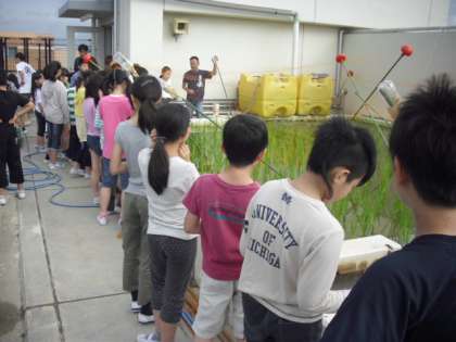 サバイバルキャンプが終了した後、5年生は田んぼの向かいました。