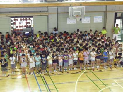 1学期の音楽朝会は今日で終わりです。2学期も学年発表や全校合唱など、様々な取組を行ってまいります。