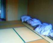 3日間お世話になった宿舎とお別れです。後片付けをしっかりやって帰ります。リュックサックの中は、着替えた服やお土産などたくさん詰まっています。帰ったらよろしくお願いします。