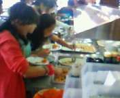 バイキングの昼食です。これを楽しみにしていた子どもたちも多いです。子どもの好きなメニューが多く、好きなものをとって食べていました。とったものは、残さず食べるように。11時45分、いただきます。