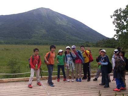 男体山をバックにお弁当を食べたあと、また戦場ヵ原を歩きました。
