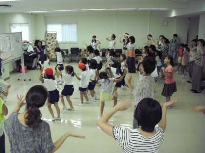 音楽ボランティアサークル「おたまじゃくし」のみなさんにらよる「うたごえ広場」が行われました。「アブラハムの子」では、体中を色々に動かしなが楽しそうに歌っていました。