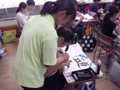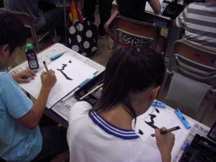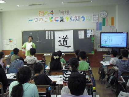 6年2組は書写「文字の組み立て方と穂先の動きを確かめよう」の学習を行いました。