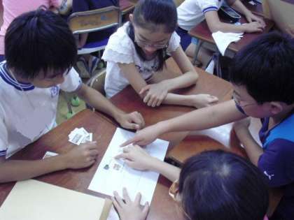 学習資料や学習形態を工夫することで、子どもたちは英語でコミュニケーションを図る活動を楽しんでいました。