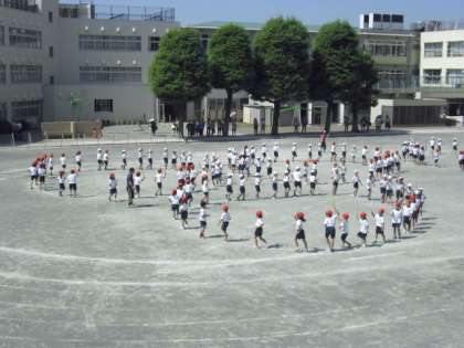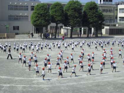 運動会が近づいてきました。各学年は校庭で表現の練習を始めています。子どもたちは先生の話を真剣に聞きながら、上手に踊ろうと頑張っています。