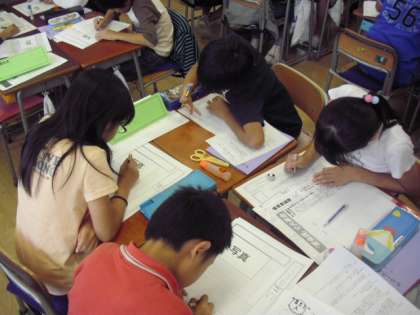 5年5組では、グループごとにそれぞれの記事作成の役割分担をし、時間内で新聞を完成させる授業を行いました。子どもたちは、新聞を書きあげた達成感と満足感を味わうことができました。