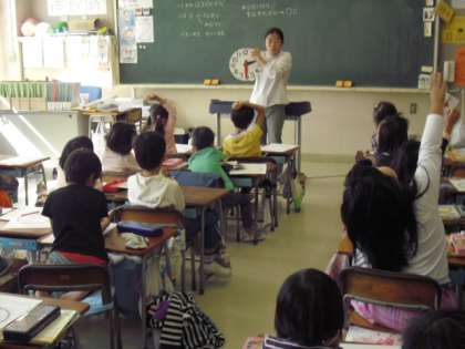 1年1組では算数科「とけいのよみかたはかせになろう」の学習が進められていました。
