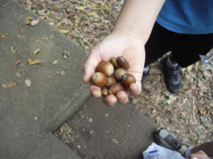 子どもたちは、ドングリや枯れ葉などを見つけながら、深まりゆく秋を感じていました。