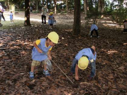 年少さんだけで、芦花公園に遠足に出かけました。しっかり歩けました。公園では、体を動かして思いっきり遊びました。いろんなものを見つけました。みんなでお弁当を食べました。たくましくなった年少さんです。