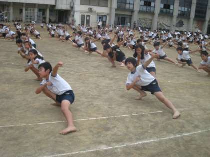 運動会の5,6年、恒例の種目、ソーラン節がうまくなってきました。6年生の実行委員の指導のもと、みんな気持が高まってきています。高学年の自覚と責任が体に表れてきています。