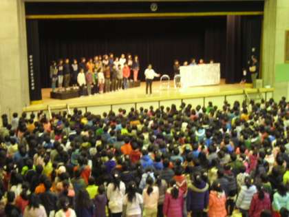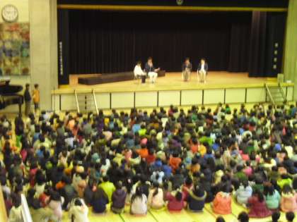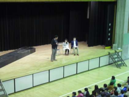 今日は、道徳授業地区公開講座です。1時間目は、東日本大震災で被災された牧師の方と被災地で地域コミュニティーの再生に尽力している方をゲストティーチャーとしてお招きして、「東日本大震災応援復興集会」を行いました。