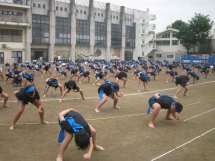 校庭で塚戸ソーランを