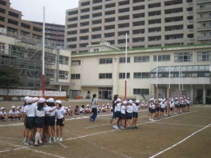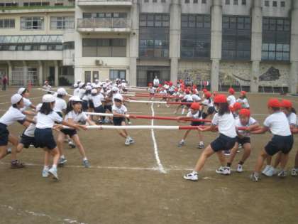 3年生の団体競技は、棒引きです。今日初めて校庭で練習をしました。この日は、白組が勝っていましたが、本番はどちらが勝つでしょうか。楽しみです。