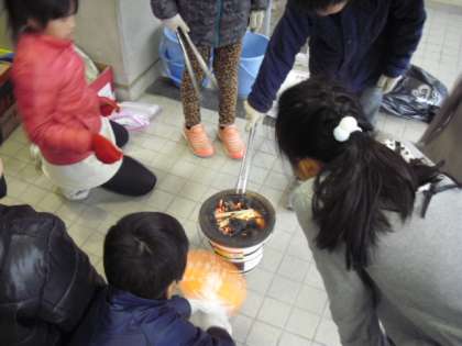 3年生は、社会科の授業の一環として、昔の道具(七輪)を実際に体験し、自己の考えを深める学習を行いました。子どもたちは、割りばしなどを使って、実際に火を起こし昔の暮らしをイメージしながら学習を進めることができました。