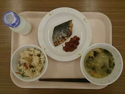2月10日(月)の給食は、「しめじごはん」「魚の照り焼き」「煮豆」「玉ねぎのみそ汁」「牛乳」です。