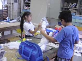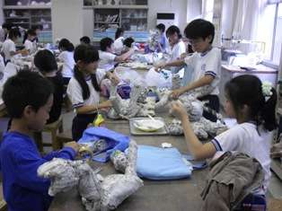 高学年の図工の横田教諭は、子供たちも発想を十分生かした創造的な図工の授業をします。4年生は、「張り子の生物」を制作しています。2組の授業でした。子供たちが楽しそうに発想豊かに取り組んむ姿に、子供のよさをたくさん感じました。