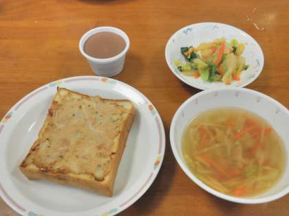 今日の給食はバレンタインデーにちなんで、「ポテマヨトースト」「ジュリエンヌスープ」「白菜のサラダ」「ココアプリン」「牛乳」です。ココアやチョコの原料であるカカオには気持ちを穏やかにしたり、集中力を高めたりする効果があります。