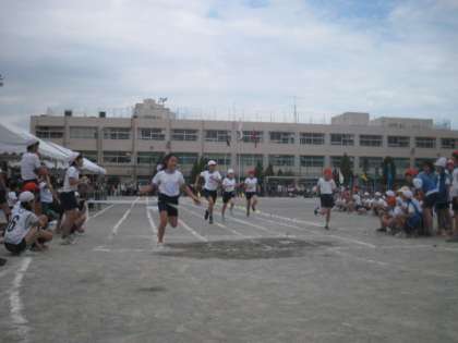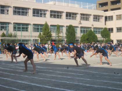 100m走、騎馬戦、塚戸ソーランをしました。高学年としての自覚を示してくれた演技でした。