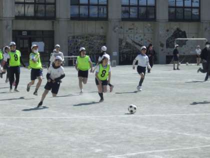 6年生は卒業に向け、「6年生を送る会」「感謝のつどい」など、様々な行事を行ってきました。今日は、学級対抗の「お別れスポーツ大会」です。