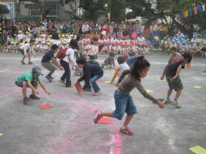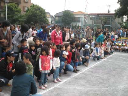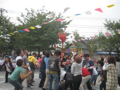 未就園児の「ここまいでおいで」、卒園した小学生の「ひっくり返してゴー」、保護者の「ガッツリ入れちゃえ」でした。みんな必死にやっていました。