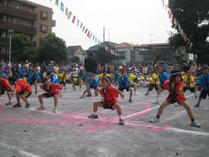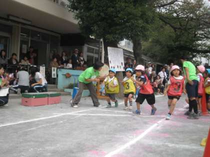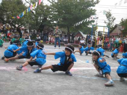 ソーラン節をカッコよく踊りました。「リレー」で力いっぱい走りました。