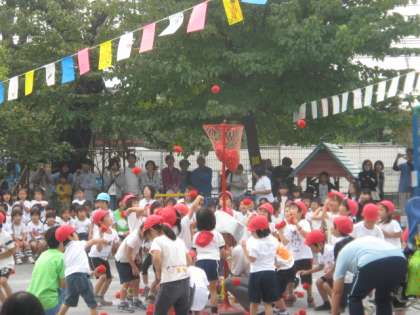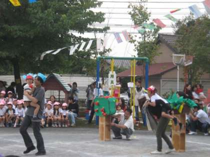 玉入れ、たくさん入れました。親子でコアラか、おサルになりました。