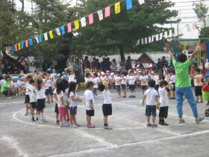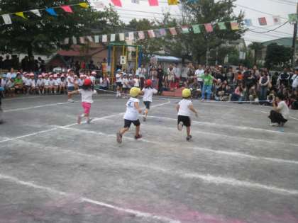 かけっこ、よーいドンと一生懸命走りました。チャオチャオダンスは、かわいかったです。