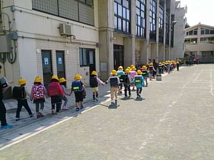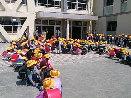 初めての学習を終えた1年生、心地よい疲れとともに下校です。