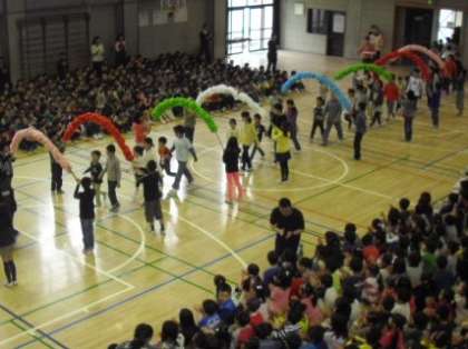 今日は1年生迎える会が開かれました。6年生にやさしく手をひかれ、嬉しそうに入場してきた1年生。1000名近くの児童の出迎えに圧倒されながらも、各学年が趣向を凝らした歓迎の出し物を楽しそうに見ていました。最後には1年生が元気な言葉と歌のお返しを披露しました。