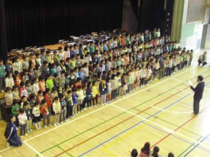 最後は、1070名の児童による校歌斉唱です。迫力のある歌声はさすが塚戸小学校です。