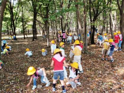 1年生は野川公園へ「秋探しに出かけました」。公園の中はどんぐりがいっぱいでした。子どもたちは持ってきた袋の中に、どんぐりや落ち葉をたくさん拾って帰ってきました。「秋探し」をした後は、友達と遊んだりお弁当を食べたりしました。