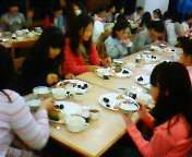 夕食です。ビーフシチューが大人気。おかわりをする子が多かったです。元気回復。みんなで食べる食事は、食欲が進みます。
