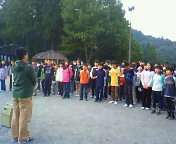 おはようございます。3日目の朝をむかえました。天気は晴れ、冷えています。今日は、村巡り。外では朝会、中では食事の用意をしています。川場のよさをたくさん感じて帰ります。昨晩から今日の朝まで、具合が悪くなり、自宅に帰った子がいます。健康管理に気を付け、過ごしていきます。